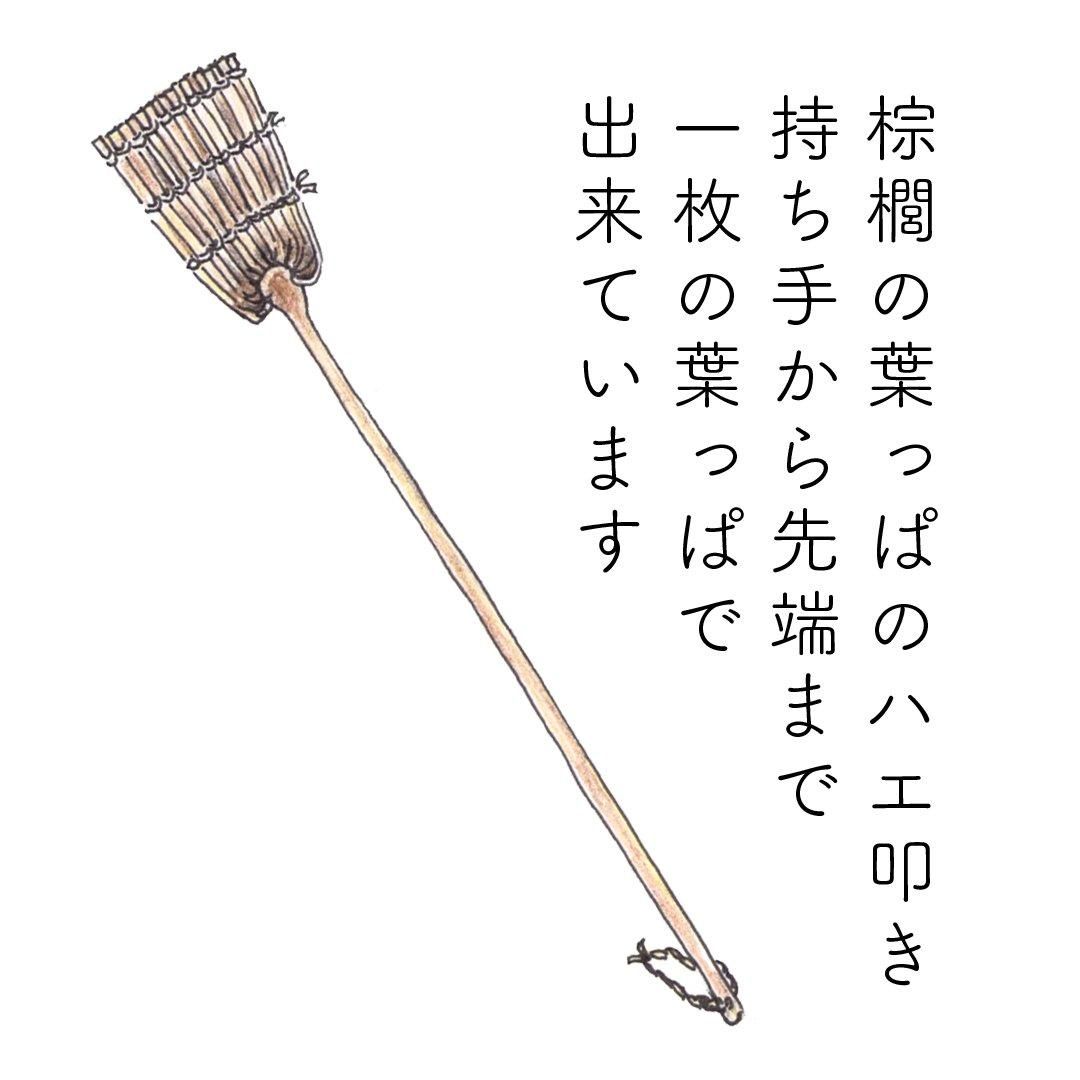 棕櫚の葉っぱでこさえたハエ叩きは、現在のプラスチック製や金属製ハエ叩きの原型です。素朴な民芸品ながら、知恵が詰まった素晴らしい日用品として、殺虫剤などが使えない食卓や台所などでもよく働いてくれます。